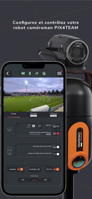 Le Pix4Team est un robot sur lequel on peut fixer une caméra ou un téléphone pour enregistrer et diffuser plusieurs sports avec fluidité et en haute qualité (selon la qualité de la connexion Internet) SANS ABONNEMENT OBLIGATOIRE. Vous restez seul propriétaire de vos enregistrements.